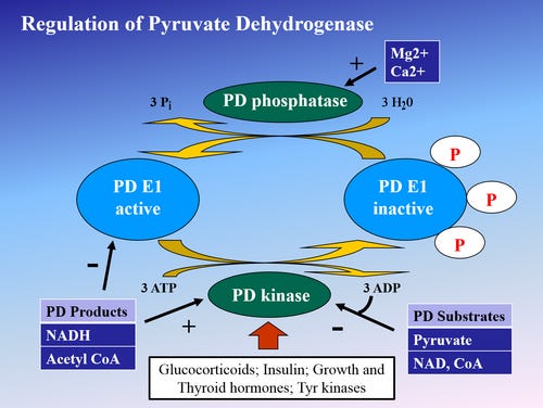 What’s interesting is that FRUCTOSE, a component of SUGAR, actually activates various enzymes in glycolysis, and can activate PDH.