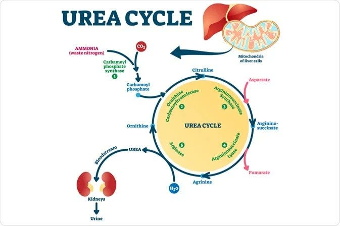 To clear out ammonia, the body needs the urea cycle, dependent on: